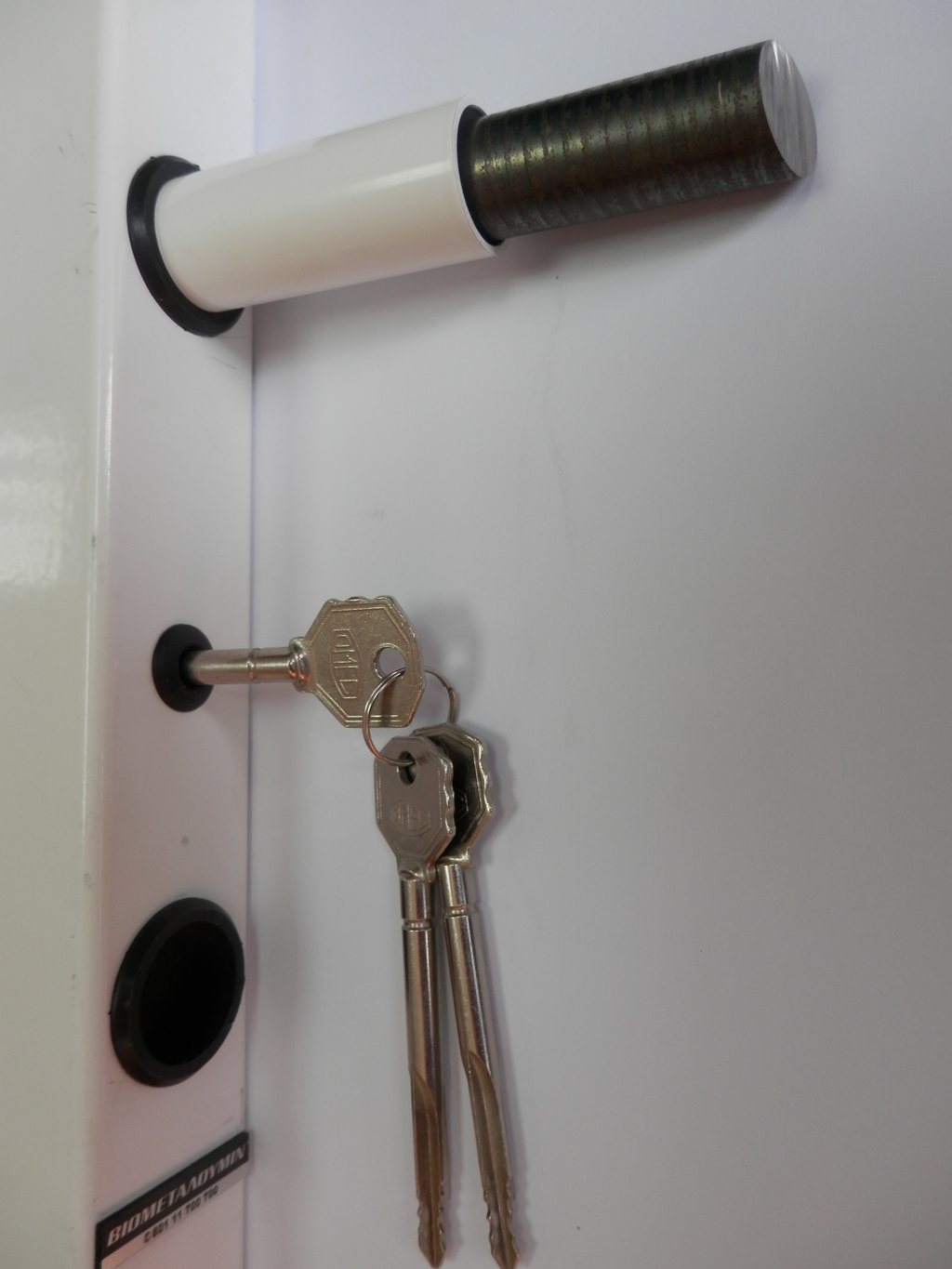 1. Εισάγουμε το κλειδί ασφαλείας στην υποδοχή της κάσας και το περιστρέφουμε 180 μοίρες – σε αντίθετη πορεία από το κλείδωμα- ώστε να απασφαλιστούν οι μπάρες.
